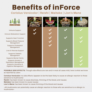 inForce Restore is a dietary supplement made up of the most potent strain of Grifola frondosa (more commonly known as Maitake) to help support the body’s liver and pancreas function. It is also helpful in supporting the body’s blood pressure function. It is a proprietary blend and offers the best value for the money. inForce Restore offers much needed support, and it can be taken on a daily basis. This product is 100% vegan, non-GMO, gluten free, and bottled in the United States in a FDA registered bottling facility that is CGMP compliant (Current Good Manufacturing Practices).